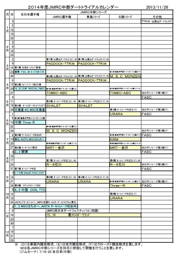 2014年度ダートトライアルカレンダー