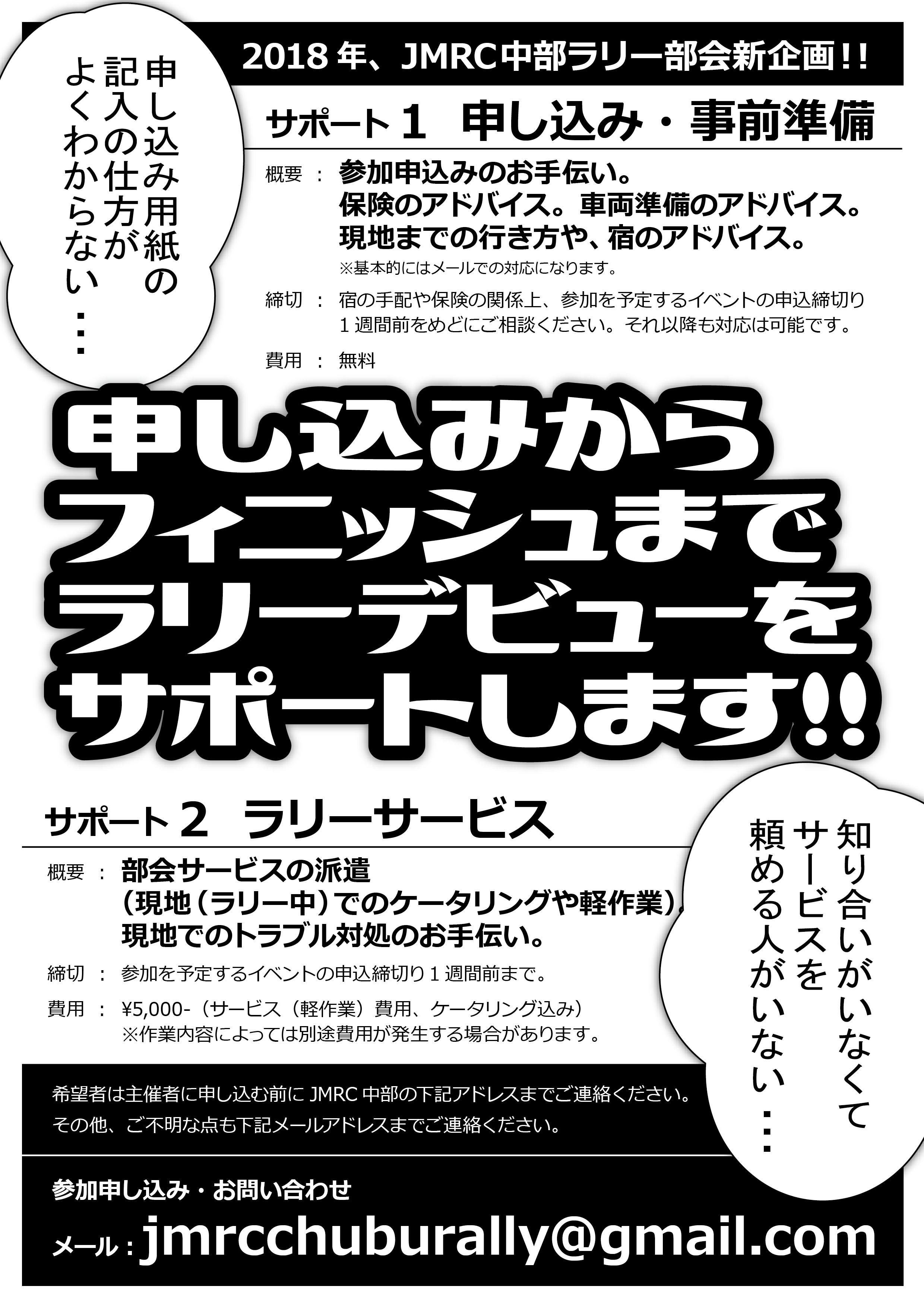 JMRC中部では、初心者/初級者を対象に、申し込みからフィニッシュまで下記内容でラリーデビューをサポートします。